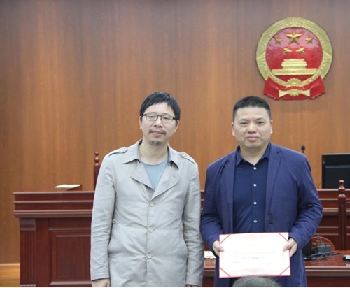 兼职教授李德文先生作为捐赠人发言。他首先表达了他是带着感情和责任而来,并回忆了人生的第一份工作就是和刘老师一起,对刘老师、曾经的同事、教室、讲台始终带着一种深深的情感。他表示,因为法治之路,道阻且长,愿意尽绵薄之力,期盼未来的青年学者、法治栋梁能成为擎天之柱,为法治中国添砖加瓦。