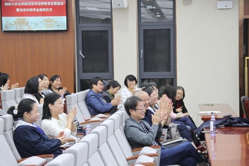 陈锦红老师作为获奖代表发言。她首先向设立刘定华法学教育发展基金的各位发起人和捐赠人表示感谢,并表达了获得这份荣誉的感激和对刘定华老师的敬意,刘老师在法学教育事业上的矢志不渝,一直是后辈们前行的灯塔和标杆。陈老师表示因为热爱选择了讲台,在法学教育事业上的付出与38年的教师生涯成就了自己一生是湖大法学人,她坚信教育是点燃希望的事业,值得自己奋斗终身。她最后表达,对于无修正